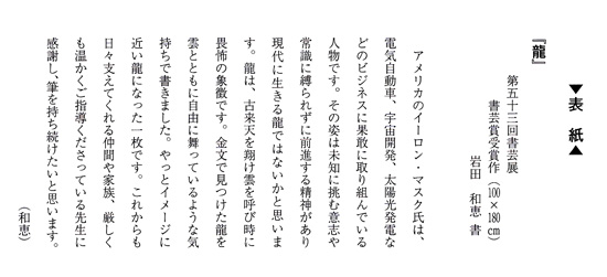 第53回 書芸展 書芸賞受賞作 (100p×180p)
